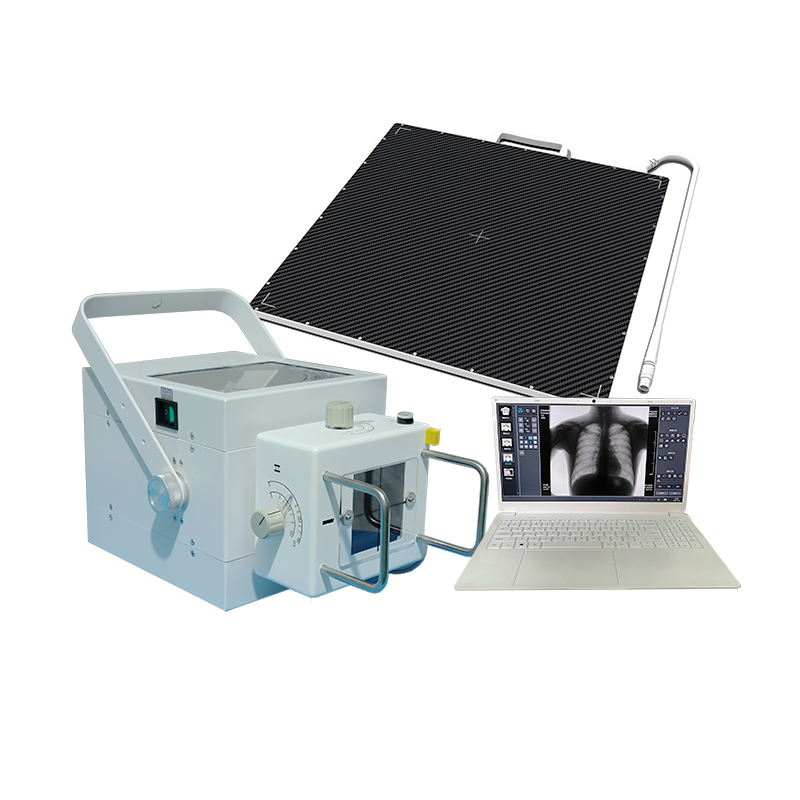 我们给客户介绍了便携机搭配数字成像方式的一款便携DR。数字成像方式优点是成像清晰度高,成像质量好.该产品是一款5KW便携式X光机,机头采用高频高压设计,射线质量好,配10英寸触摸显示屏,操作方便,预设参数,可以通过触摸不同的部位选择拍摄参数。配17*17有线平板探测器DR系统。平板探测器配的是1717有线板的产品,配医用工作站软件。该平板探测器性能稳定。